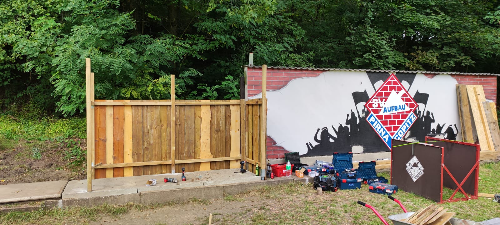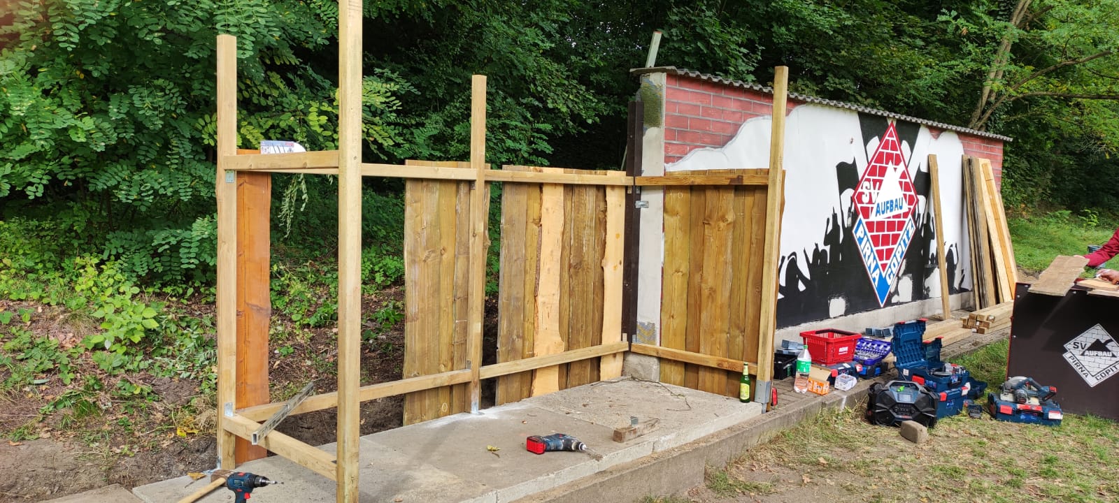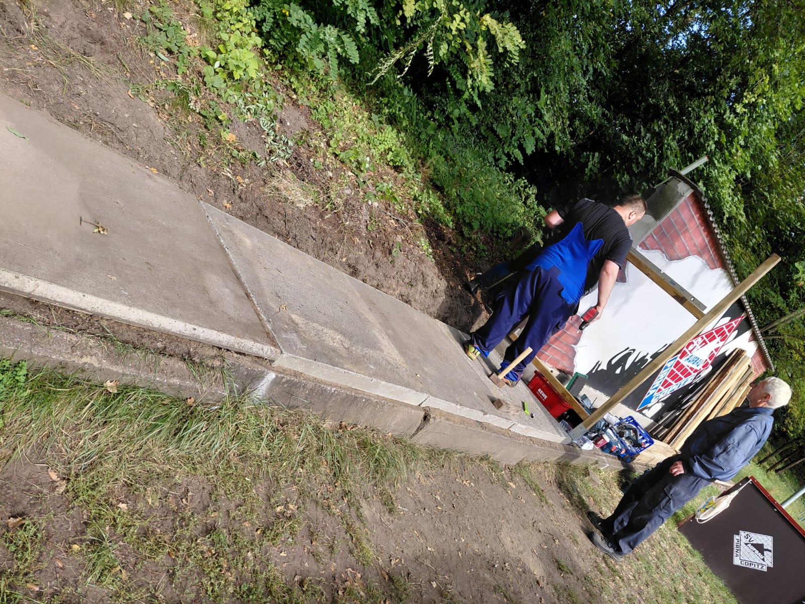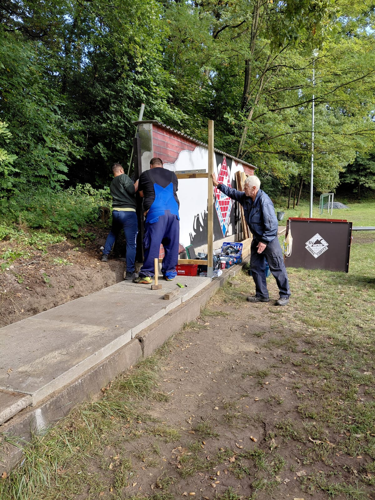 Dank des tatkräftigen Einsatzes und des unermüdlichen Engagements unserer Helfer – insbesondere der beiden Holger und von Heiko – sowie der großzügigen Unterstützung der Fa. Gruner und aller weiteren Mitwirkenden, erstrahlen die Bänke nun in neuem Glanz und bieten unseren Spielern und Betreuern wieder eine angemessene und komfortable Unterkunft am Spielfeldrand.