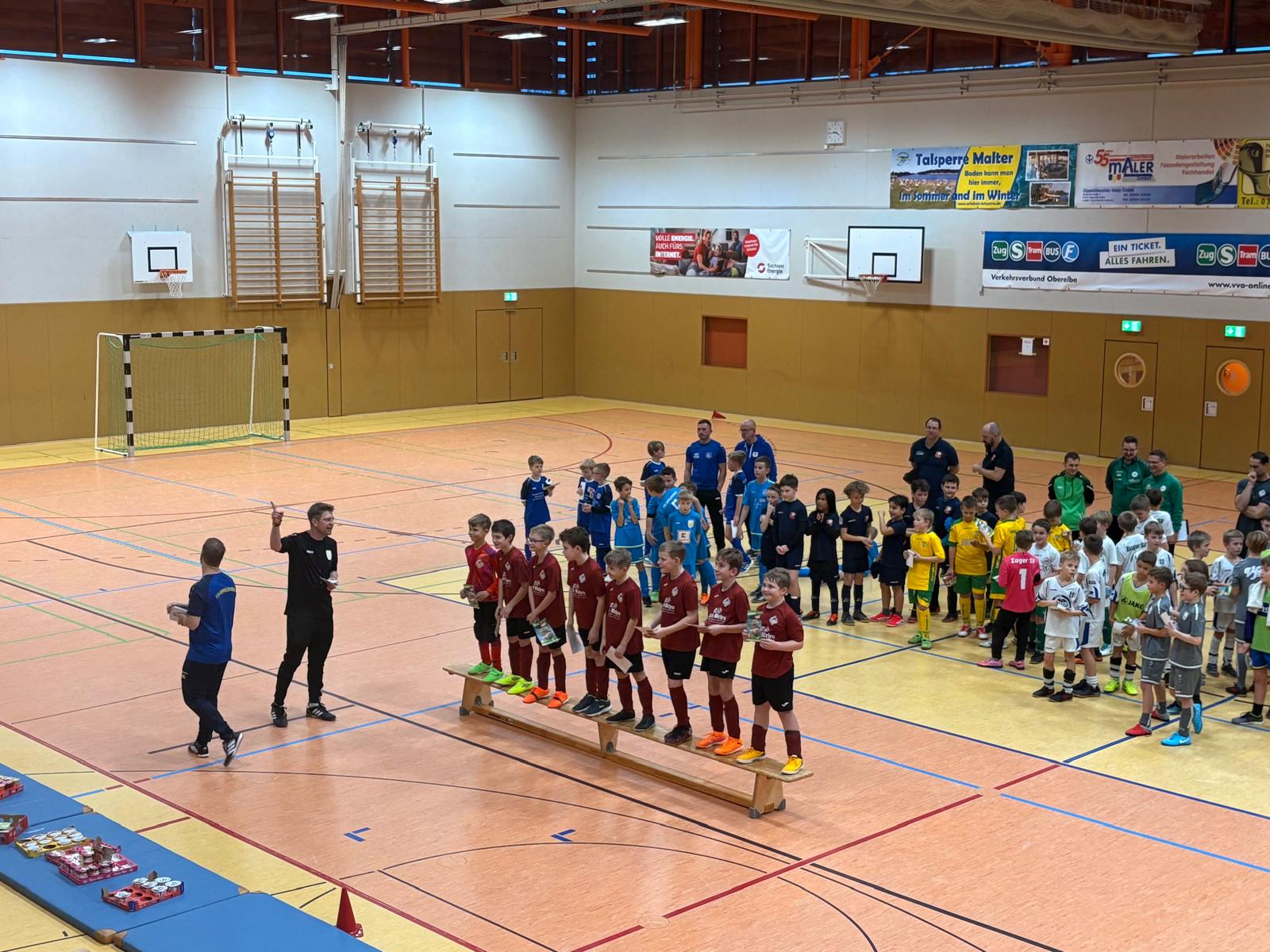 Heute stand für unsere E-Junioren das nächste Hallenturnier auf dem Programm, und dafür ging es ins schöne Osterzgebirge, genauer gesagt nach Dippoldiswalde! 🏔️