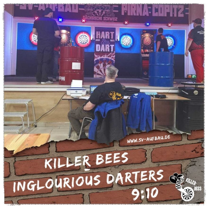 Spannung pur am Freitagabend in Königsbrück! Die Killer Bees mussten sich zum Saisonstart den Inglourious Darters mit 9:10 geschlagen geben.